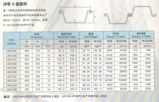 熱軋、冷彎鋼板樁交貨長度為6m、9m、12m、15m、18m、21m、24m、27m,