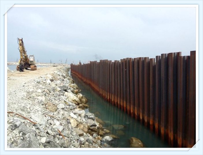 鋼板樁圍堰是指在水利工程建設(shè)中,為建造永久性水利設(shè)施,修建的臨時(shí)性圍護(hù)結(jié)構(gòu)。其作用是防止水和土進(jìn)入建筑物的修建位置,以便在圍堰內(nèi)排水,開(kāi)挖基坑,修筑建筑物。一般主要用于水工建筑中,除作為正式建筑物的一部分外,圍堰一般在用完后拆除。圍堰高度高于施工期內(nèi)可能出現(xiàn)的最高水位。