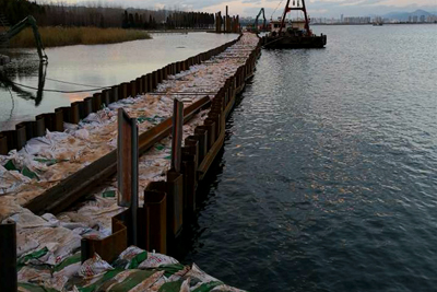 從施工效果來說,拉森鋼板樁的止水效果是較為顯著。兩條鋼板樁在逐根插打時(shí),通過樁兩側(cè)止水鎖扣的相互咬接,形成一個(gè)水密結(jié)構(gòu),擋住外側(cè)水土,從而增加結(jié)構(gòu)的強(qiáng)度及密度,作為支護(hù)結(jié)構(gòu)兼止水帷幕支護(hù)。因其施工相對簡單、重復(fù)使用度高,目前在我國的基礎(chǔ)建設(shè)方面應(yīng)用較為廣泛。