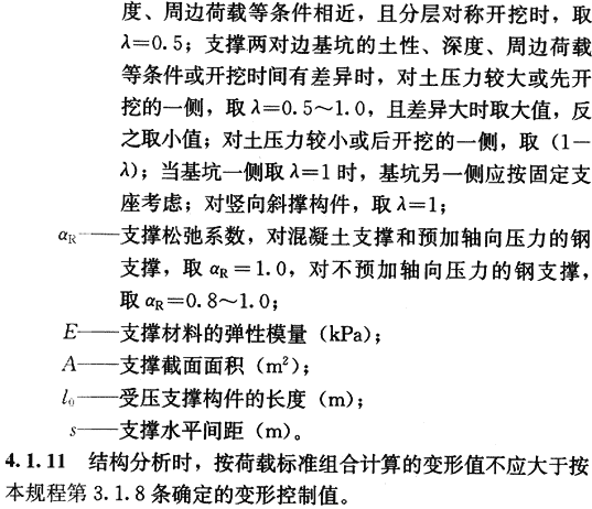 4 當(dāng)有可靠經(jīng)驗(yàn)時(shí),可采用空間結(jié)構(gòu)分析方法對(duì)支擋式結(jié)構(gòu)進(jìn)行整體分析或采用結(jié)構(gòu)與土相互作用的分析方法對(duì)支擋式結(jié)構(gòu)與基坑土體進(jìn)行整體分析。