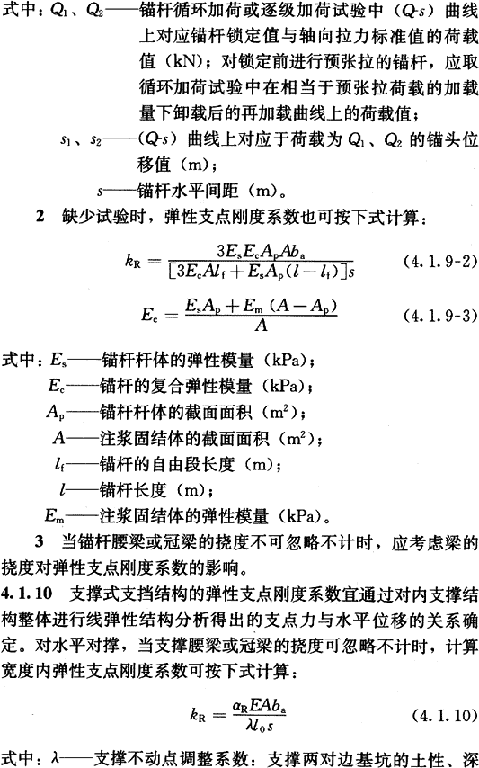 5 錨桿和內(nèi)支撐對(duì)擋土結(jié)構(gòu)的約束作應(yīng)按彈性支座考慮,并應(yīng)按本規(guī)程第4.1.8條確定。