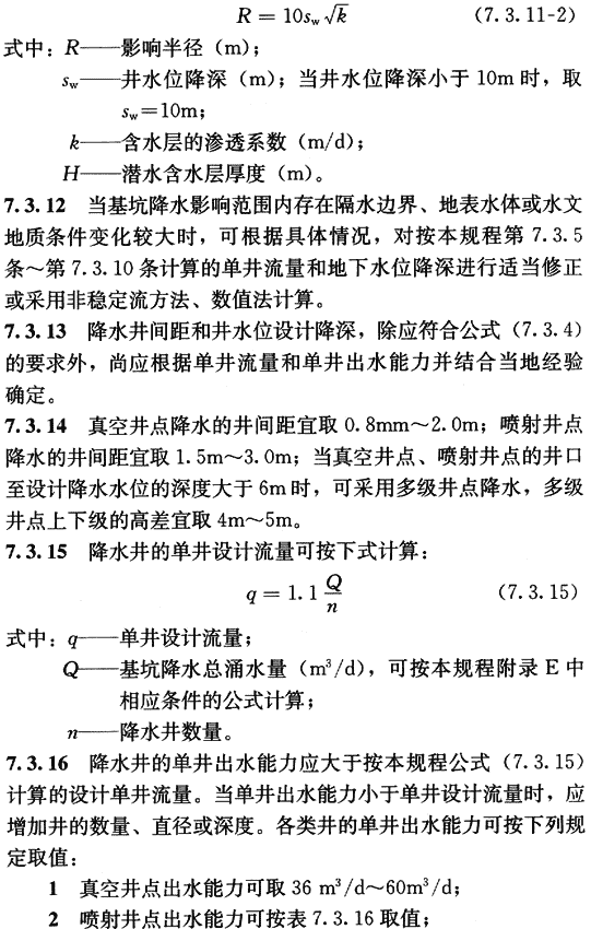 7.3.26 當(dāng)基坑面積較大時(shí),可在基坑內(nèi)設(shè)置一定數(shù)量的疏干井。
