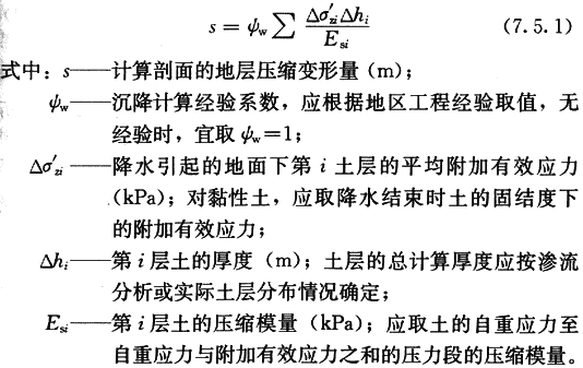 7.5.1 降水引起的地層壓縮變形量可按下式計(jì)算: