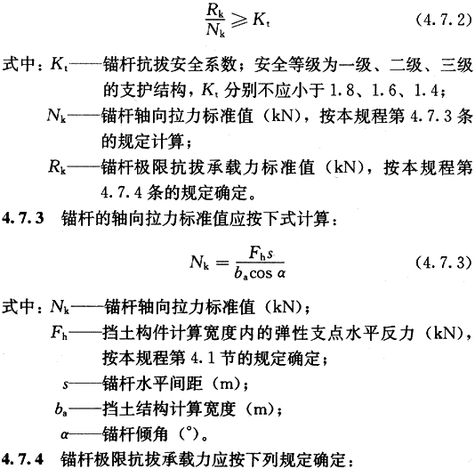 4.7.2 錨桿的極限抗拔承載力應(yīng)符合下式要求: