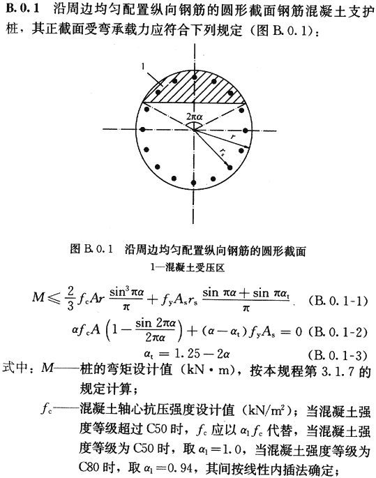 建筑基坑支護技術(shù)規(guī)程(附錄B 圓形截面混凝土支護樁的正截面受彎承載力計算)
