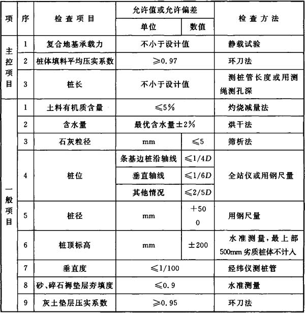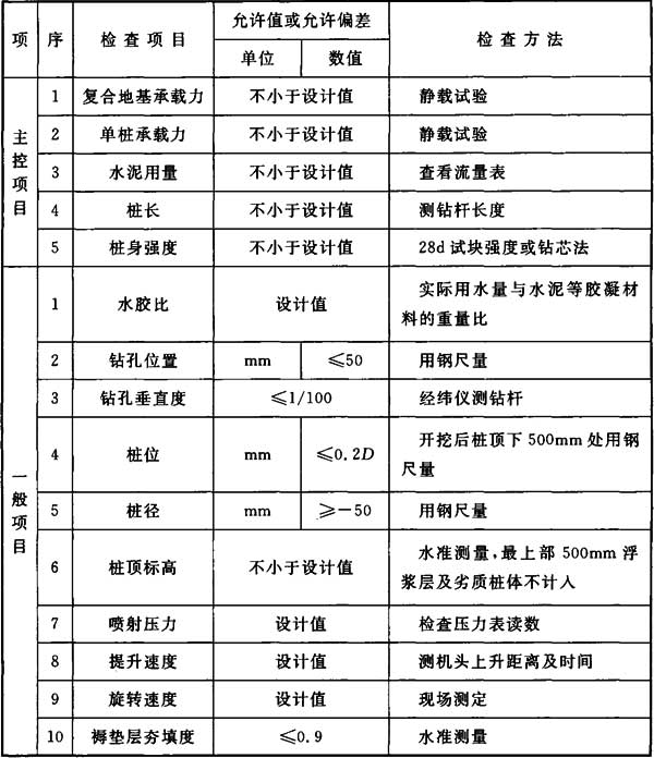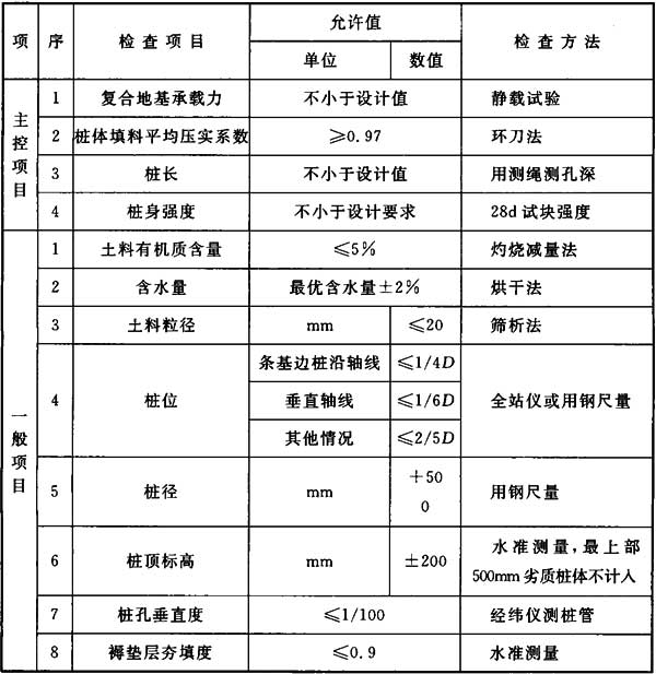 4.11.3 施工結(jié)束后,應(yīng)檢驗(yàn)樁體的強(qiáng)度和直徑,以及單樁與復(fù)合地基的承載力。