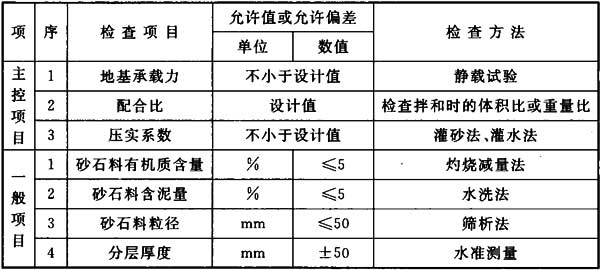 4.9.4 砂石樁復(fù)合地基質(zhì)量檢驗(yàn)標(biāo)準(zhǔn)應(yīng)符合表4.9.4的規(guī)定。