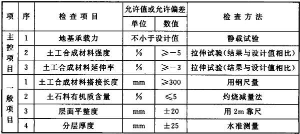 4.4.4 土工合成材料地基質(zhì)量檢驗(yàn)標(biāo)準(zhǔn)應(yīng)符合表4.4.4的規(guī)定。