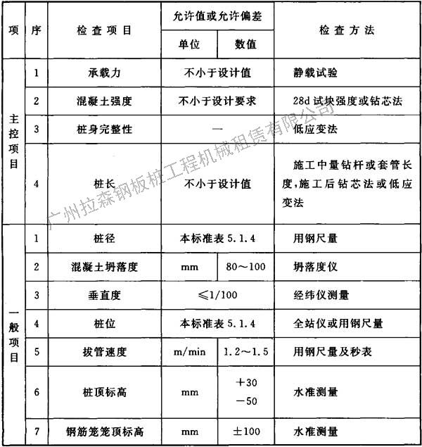 表5.9.4 沉管灌注樁質(zhì)量檢驗標(biāo)準(zhǔn)