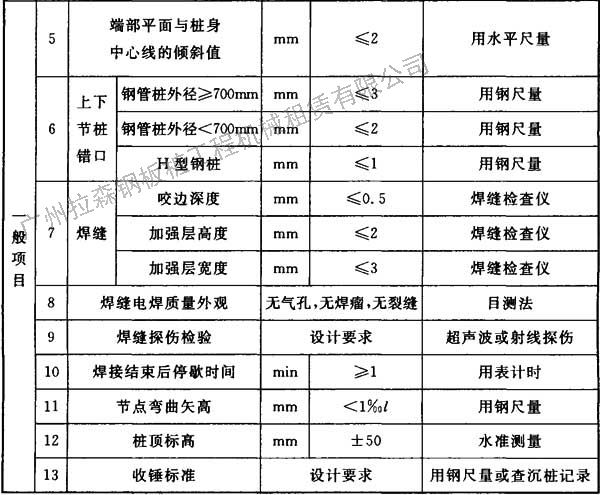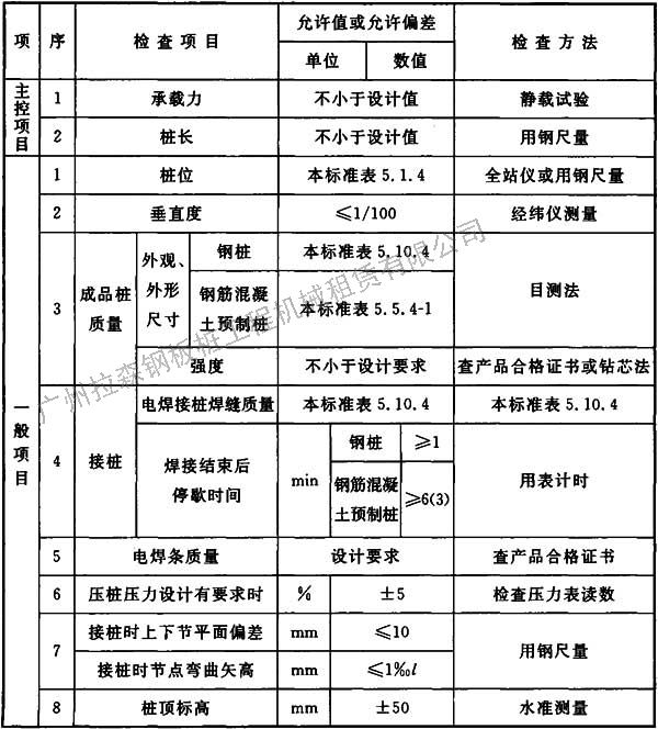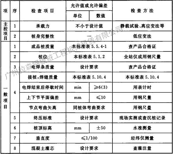 表5.10.4 鋼樁施工質(zhì)量檢驗標(biāo)準(zhǔn)