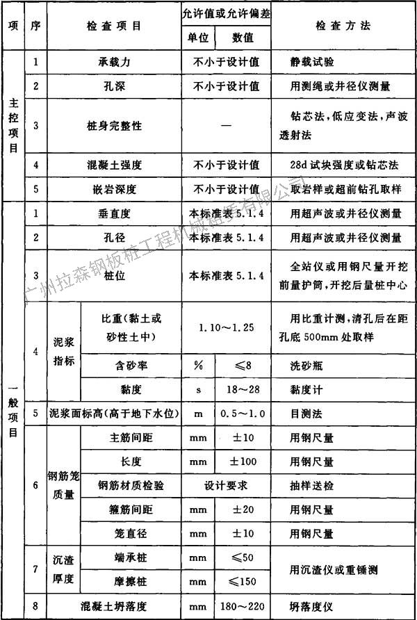 表5.6.4 泥漿護壁成孔灌注樁質(zhì)量檢驗標(biāo)準(zhǔn)