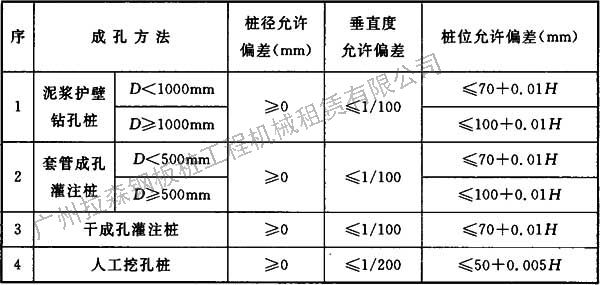 5.1.4 灌注樁的樁徑、垂直度及樁位允許偏差應(yīng)符合表5.1.4的規(guī)定。