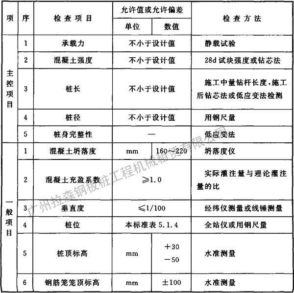 5.7.2 施工中應(yīng)檢驗鋼筋籠質(zhì)量、混凝土坍落度、樁位、孔深、樁頂標(biāo)高等。