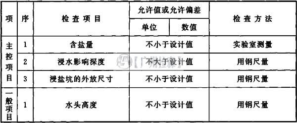 6.5.6 當鹽漬土地基采用浸水預溶法地基處理時,其質(zhì)量檢驗應符合表6.5.6的規(guī)定。