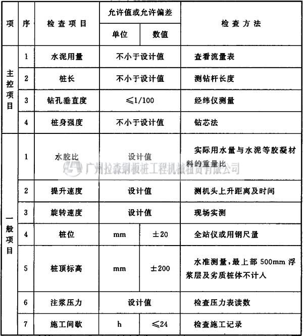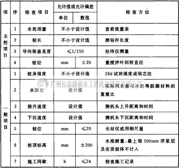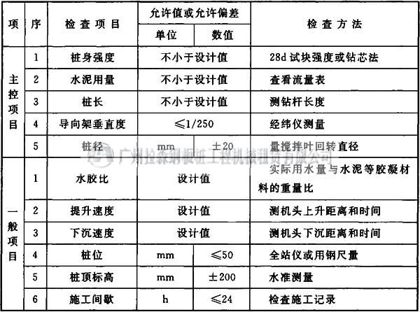 表7.8.4 水泥土攪拌樁的質(zhì)量檢驗標準