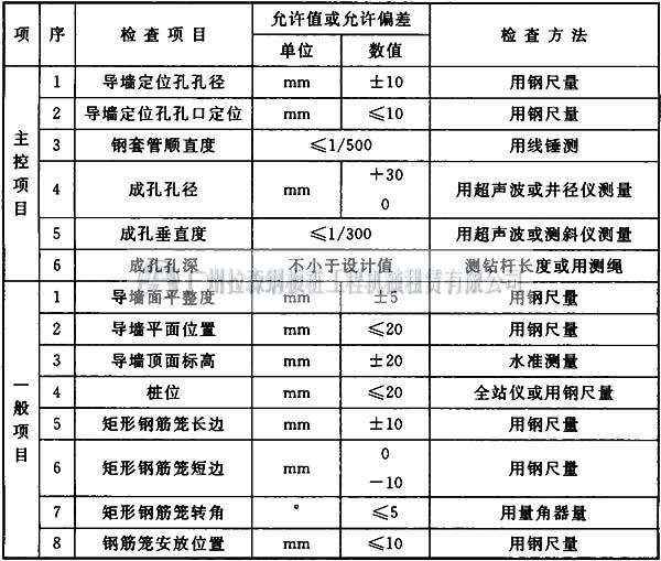 7.4.1 施工前,應對導墻的質(zhì)量和鋼套管順直度進行檢查。