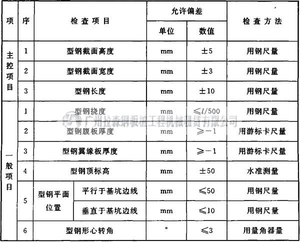 表7.3.2 鋼板樁圍護墻質(zhì)量檢驗標準
