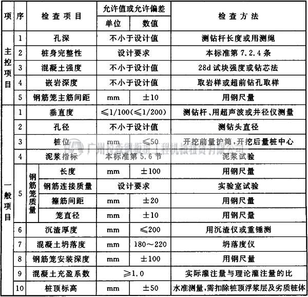 7.2.6 灌注樁排樁的質(zhì)量檢驗應符合表7.2.6的規(guī)定。